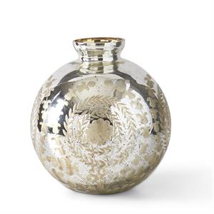 12.75 Inch Silver Mercury Glass Etched Round Vase