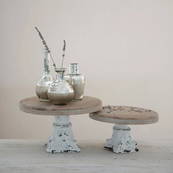 Distressed Whitewashed Metal Pedestal--Small
