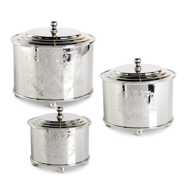 Set of three Metal Crest Containers