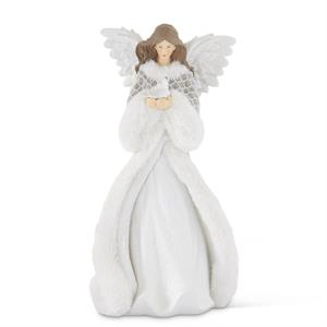 15 Inch Fur Trimmed Angel with White Glittered Wing