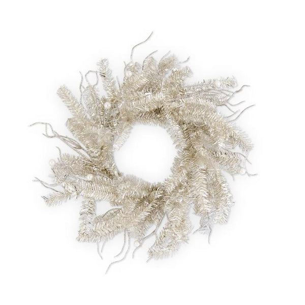 18 inch Champagne Tinsel Twig and Pearl Wreath
